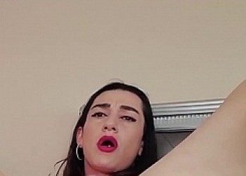 TS stepmom Maddy Cakes feeling horny and sexy while wanking her big cock in a sexy lingerie and a sex toy for added stimulation. She's inviting and...