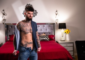 Redhead Latina TS Foxxy has an amazing time while sucking dicks mutually with tattooed jock Ink Fit, who cums on her feet after deep anal!